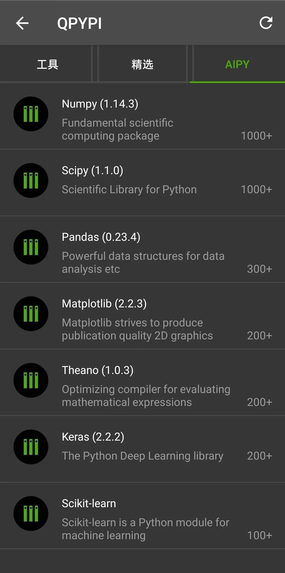 许多手机编程软件不提供第三方库的安装。Qpython支持安装第三方库和工具。