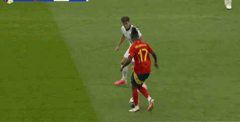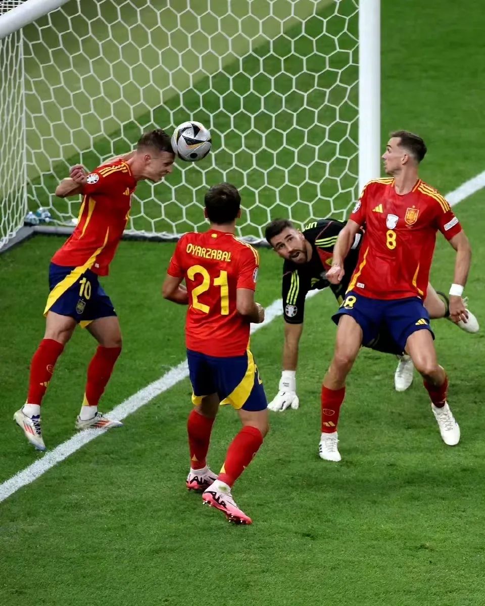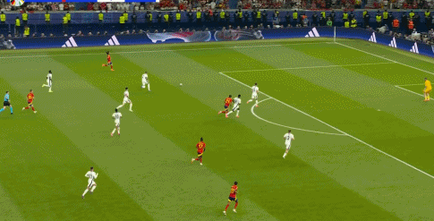 所以,西班牙率先打出了自己的实力牌。进攻中,左右两侧是亚马尔和尼科-威廉斯两个热血小青年,冲出空间之后,让中路莫拉塔在后卫群里吸引防守,奥尔莫再伺机往身后反插。