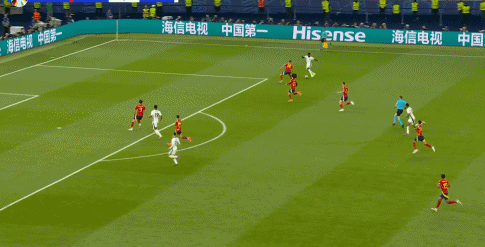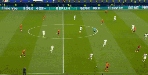 B.西班牙的高位逼抢拉到最高强度,让赖斯和梅努时时刻刻处于背身拿球的状态。