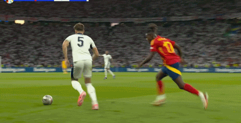 事实证明,南门对于卢克-肖的等待是值得的。整个上半场,西班牙完全靠两个小边锋打透的进攻只有一次。第11分钟,尼科-威廉斯突入禁区晃开空当传中,逼着斯通斯把自己扔出去才防下来。