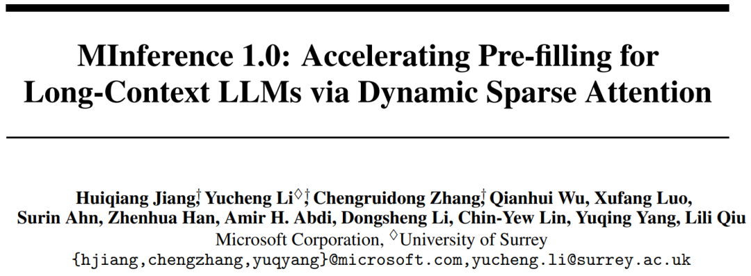 为了解决上述问题,来自微软、萨里大学的研究者提出了一种旨在加速长序列处理预填充的稀疏计算方法:MInference( Milliontokens Inference )。