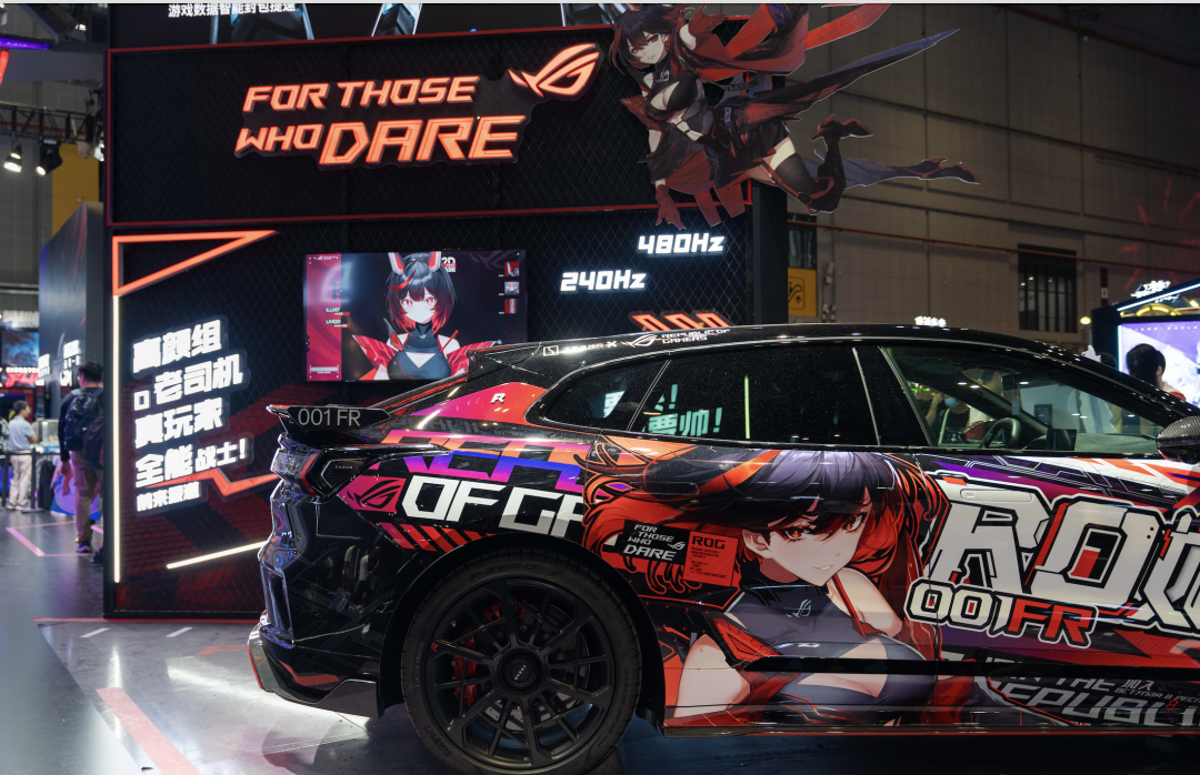 另一边 ROG 也不甘示弱,和极氪合作也出了一台,放在自家展位最醒目的位置上。