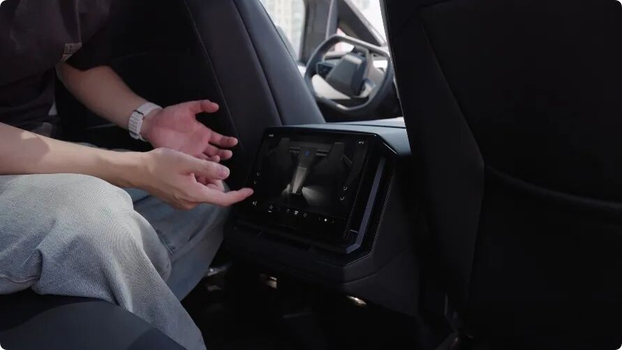 可以发现,这里也有一块显示屏,可以调空调、座椅,和毛豆 3 类似,算是特斯拉老传统了。