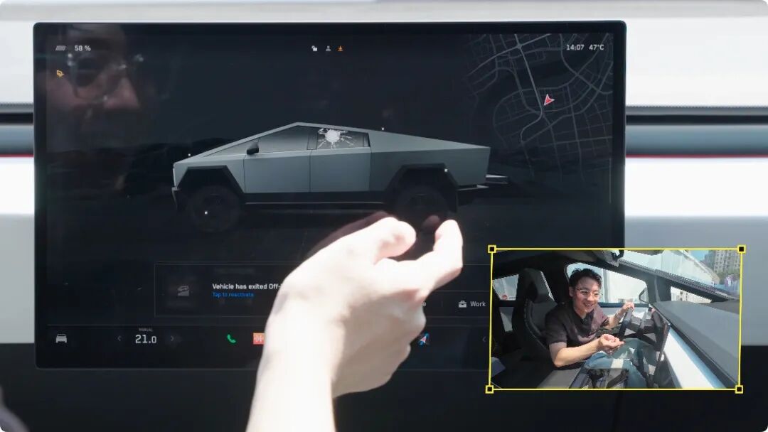 比如在这个 90 度的直角弯,一般的车咱们得打一圈多的方向才能过,但 Cybertruck 只需要打 120 度左右,而且手感一点也不重,感觉很灵巧、轻盈,不像是一台比 MEGA 还大的车。