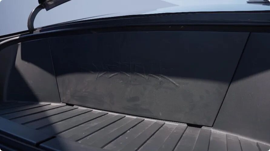 当我摸到这车的时候,第一感受就是比我想象中的要大很多,**车长 5.6 米,宽 2.2 米,高 1.8 米,**和理想 MEGA 相比, Cybertruck 还要再大出一个级别。