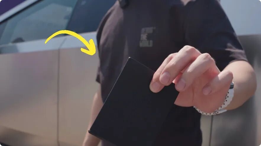 ( 垫板上还印着 cybertruck 车型的 logo ,这个 logo 是无数个小小的焊点模样拼起来,非常非常帅 )