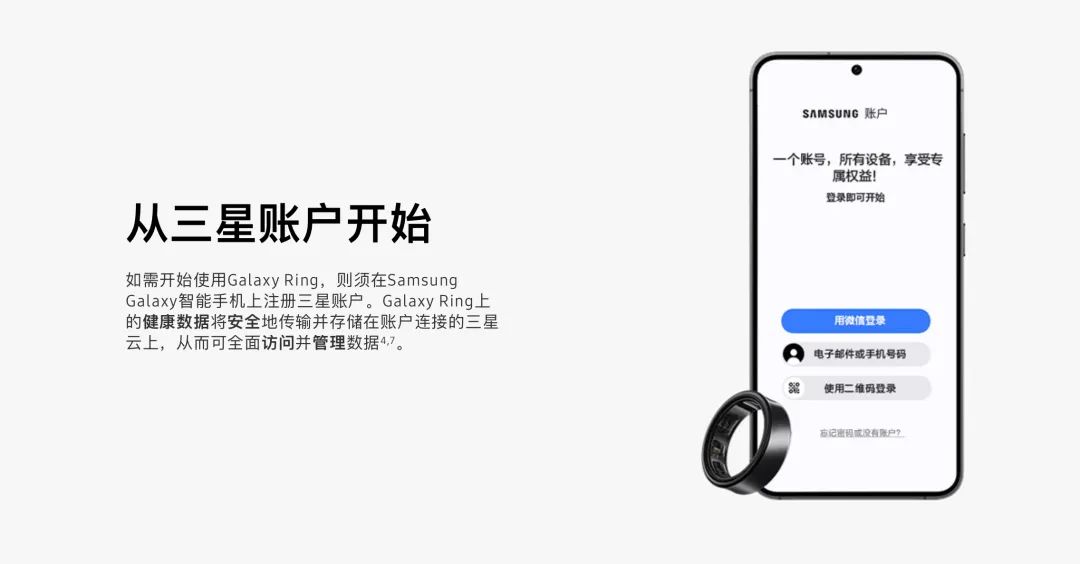 Galaxy Ring 的数据查看要基于三星账户和三星健康|图片来源:Samsung