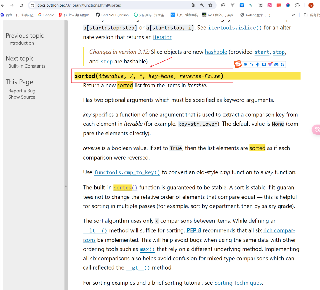 sorted(iterable, /, *, key=None, reverse=False)