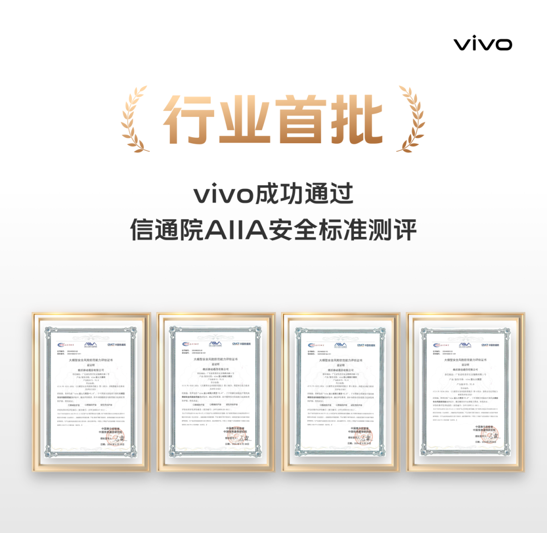 近日,vivo自主研发的蓝心大模型,以卓越的表现率先完成由中国信息通信研究院人工智能研究所主导的“大模型安全风险防范能力要求及评估方法”测评工作,成为行业首批完成测评的企业,并在所有评测项目中荣获最高认证级别的优秀防护级。