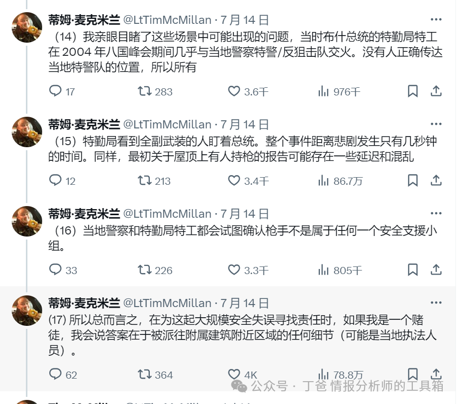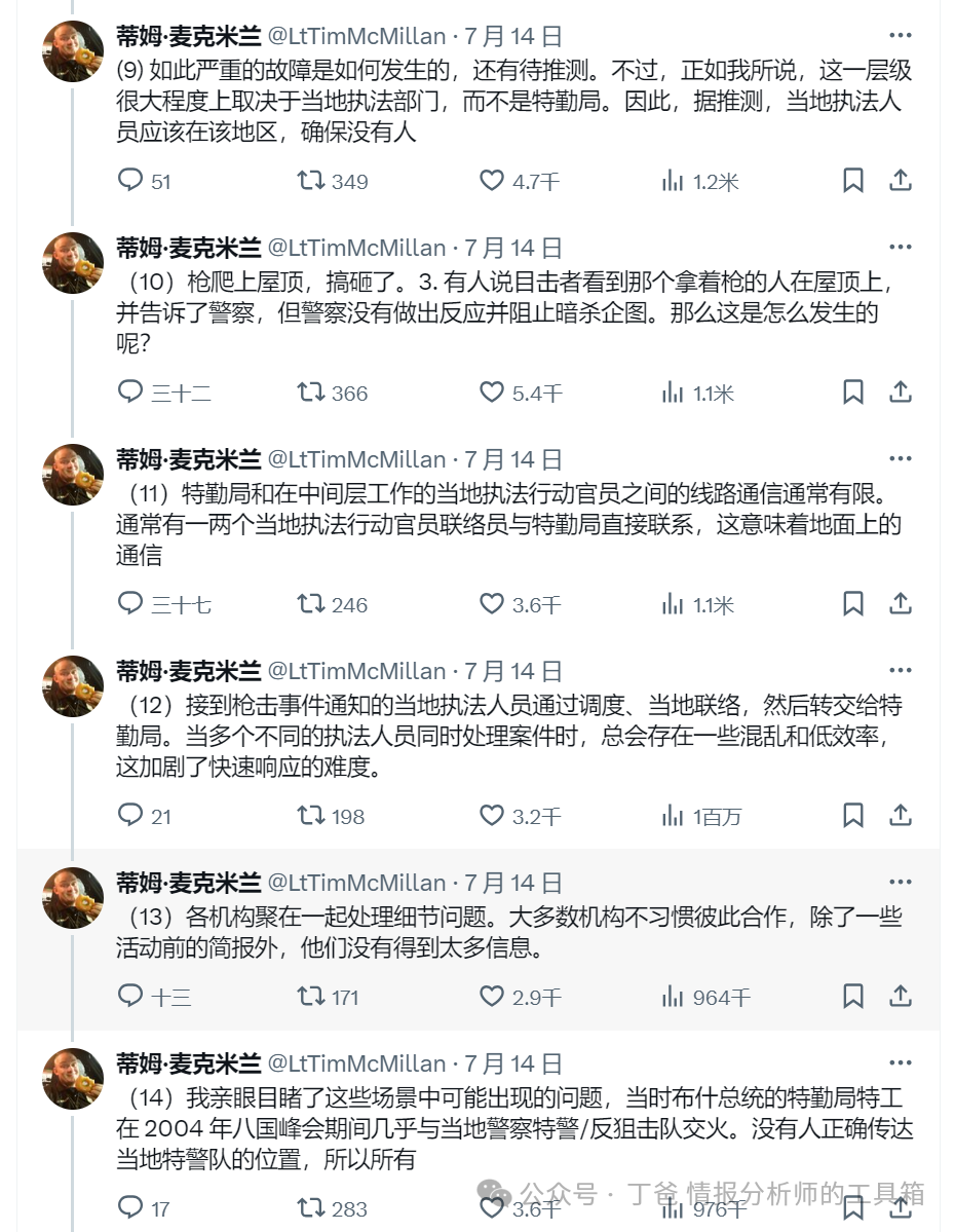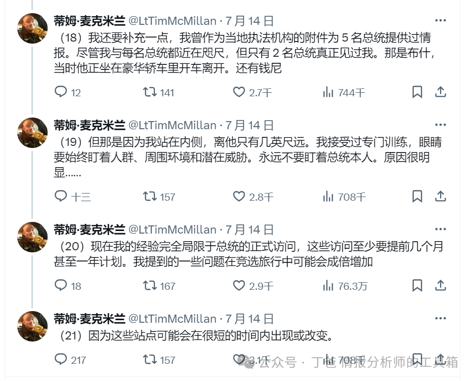 有过保卫总统经验的特工蒂姆·麦克米兰(Tim McMillan)对现场安保做了解读:
