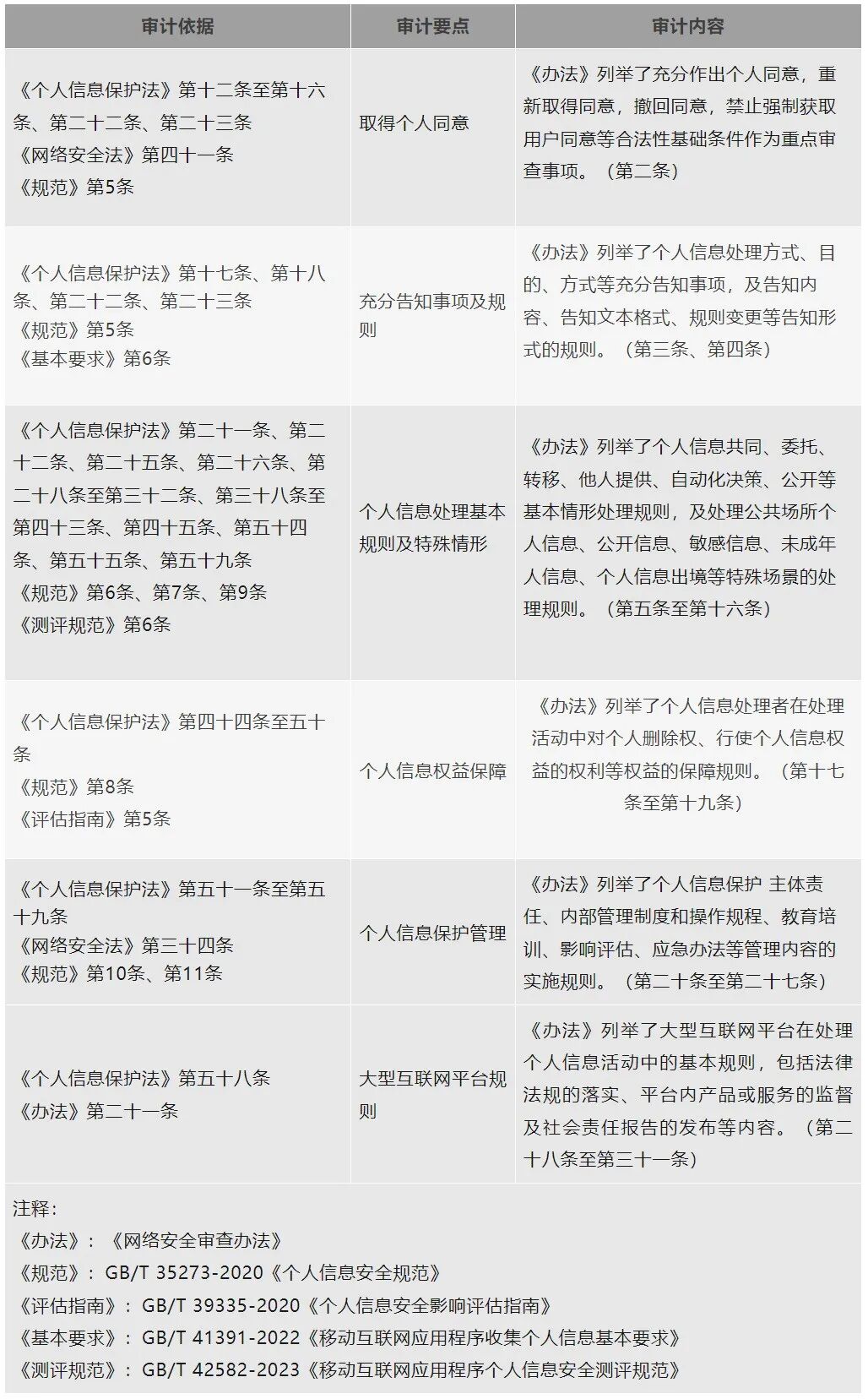 表 个人信息保护合规审计内容要点
