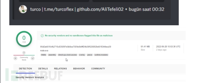 此外,CPR还确定了许多开源JavaScript恶意软件的实例,如TurkoRat、Vare-Stealer和Mirai stealer,这些恶意软件在发布之前被攻击者编译成V8字节码。在某些情况下,开发者甚至提供了打包和编译恶意软件的说明,强调他们在VirusTotal上的低检测率。