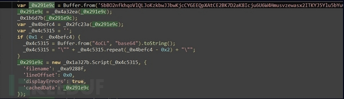 嵌入在Electron应用程序中的ChromeLoader加载器脚本严重混淆。解混淆后,该加载器会读取base64字符串,对其进行解码,并使用RC4对其进行解密。解密的内容是一个字节码对象,稍后使用vm.Script调用它会呈现最后的有效负载。