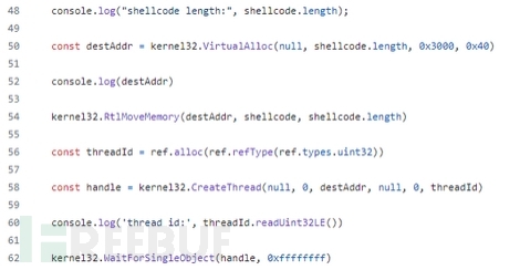 该恶意软件包含ffi-napi和ref-napi模块,允许通过纯JavaScript加载和调用动态库。接下来,该加载器会建立与C&C服务器的通信,以检索shellcode缓冲区。