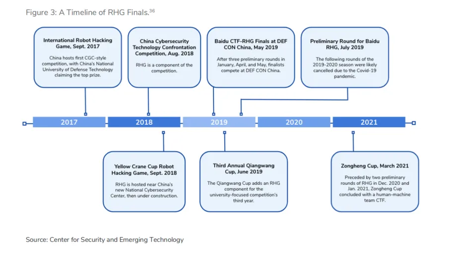 但在中国,永信至诚打造的RHG竞赛在2017年初次举办后,后续在“黄鹤杯”RHG机器人网络安全大赛、百度网络安全技术对抗赛BCTF、“纵横杯”网络安全竞赛、“网鼎杯”网络安全大赛、“陇剑杯”网络安全大赛等大规模赛事中都得到了延续。RHG持续吸引了众多国内一线科研机构积极响应并参与到人工智能网络安全对抗研究中来。