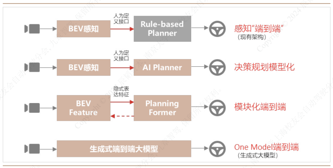 端到端自动驾驶的架构演进示意图 | 图片来源:辰韬资本