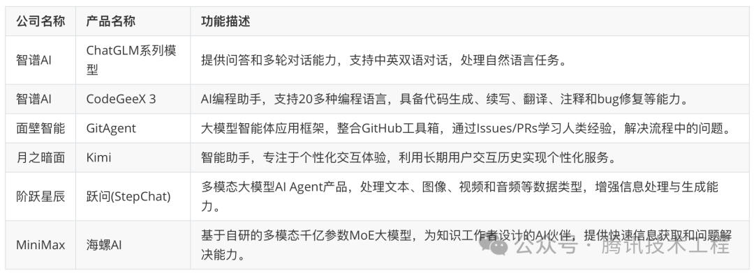 随着大模型技术的兴起,国内AI创业公司在AI Agent领域推出了多样的产品。以下是一些知名AI独角兽公司的产品概览: