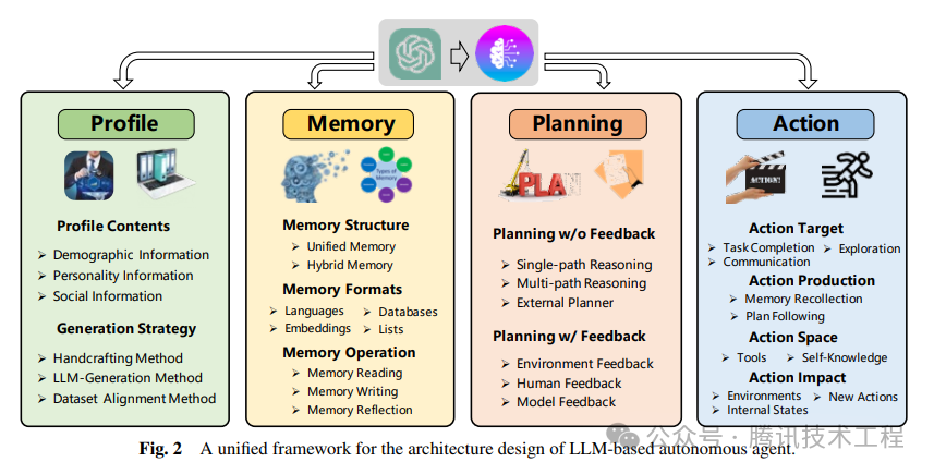 同时作者给出了基于LLM的智能体架构图: