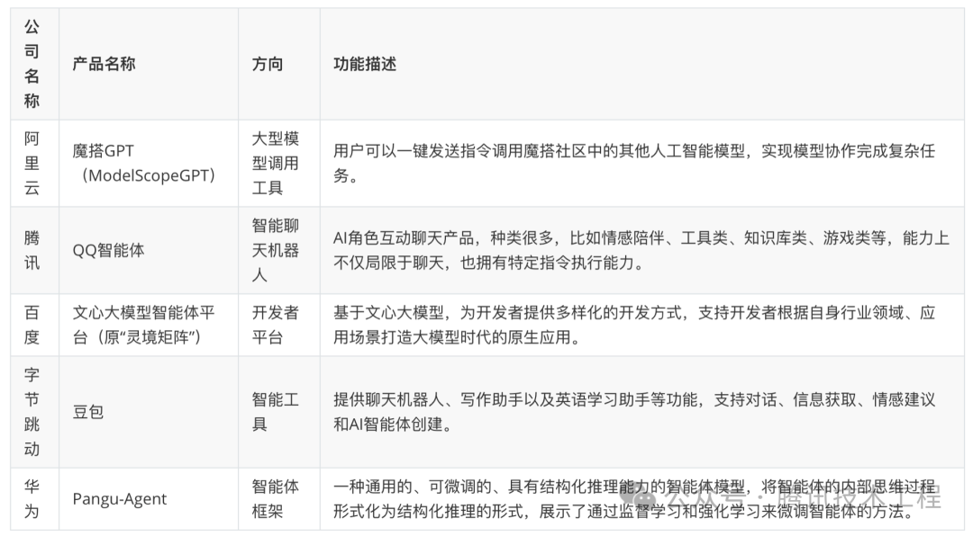 以下是中国主要科技公司在AI Agent领域的一些关键产品和研究方向的概览。