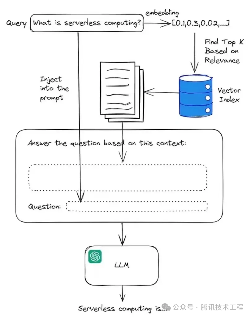 简单说就是把用户query转为向量,再根据query的向量从向量数据库里检索出最相关的向量,作为补充知识结合用户最初的query一起喂给大模型。大型语言模型结合检索到的上下文信息,生成准确且相关的回答。