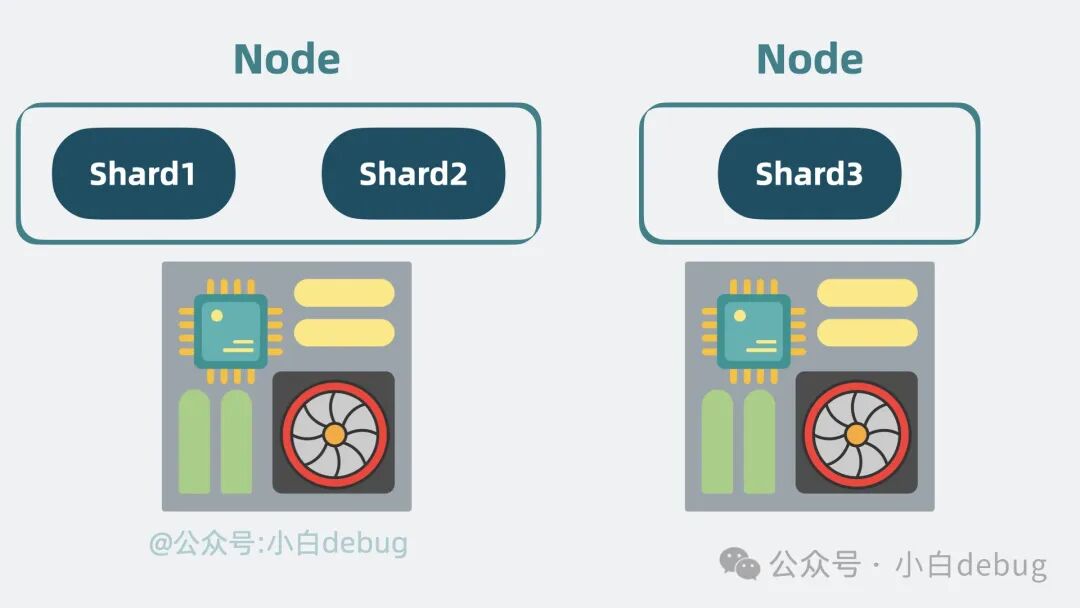 于是我们可以申请更多的机器,将 分片 分散部署在多台机器上,这每一台机器,就是一个 Node。我们可以通过增加 Node 缓解机器 cpu 过高带来的性能问题。