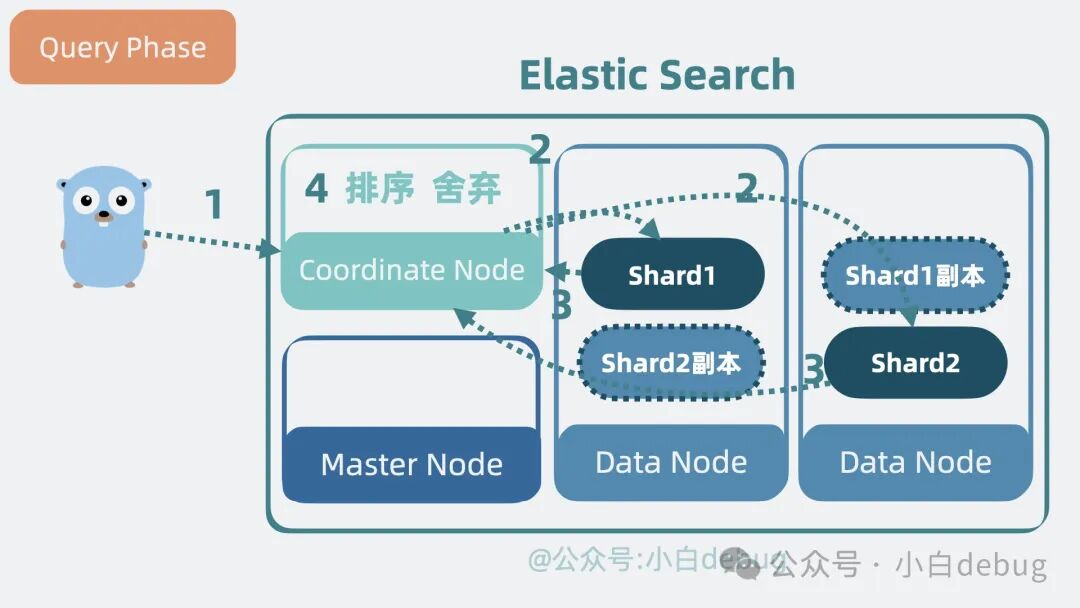ES 的搜索流程分为两个阶段:分别是查询阶段(Query Phase)和获取阶段(Fetch Phase) 我们分别看下。