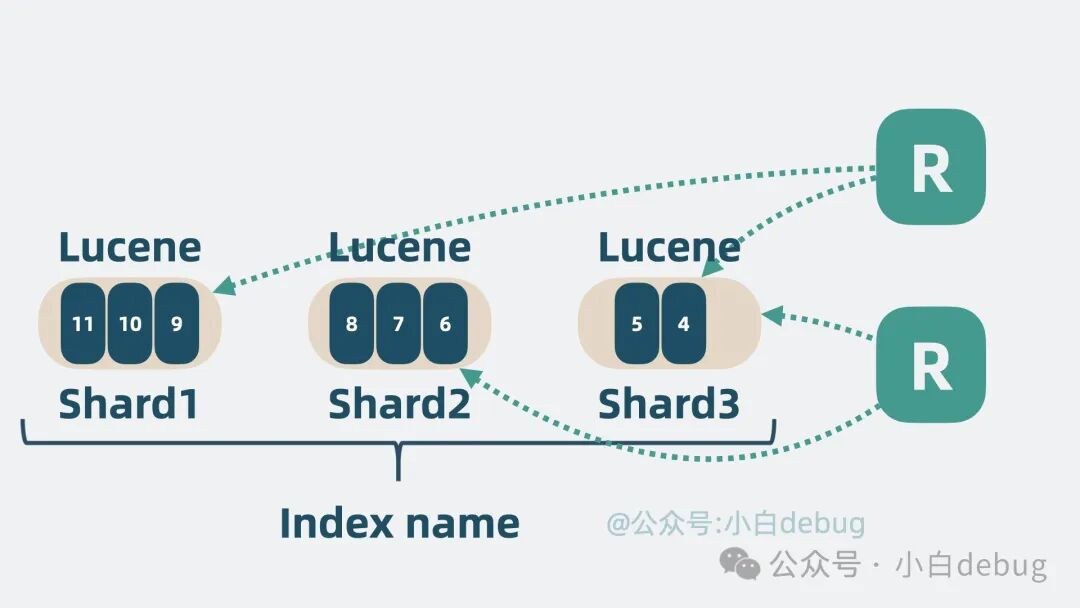 但单个 Index Name 内数据依然可能过多,于是可以将单个 Index Name 的同类数据,拆成好几份,每份是一个 shard 分片,每个 shard 分片本质上就是一个独立的 lucene 库。这样我们就可以将读写操作分摊到多个 分片 中去,大大降低了争抢,提升了系统性能。