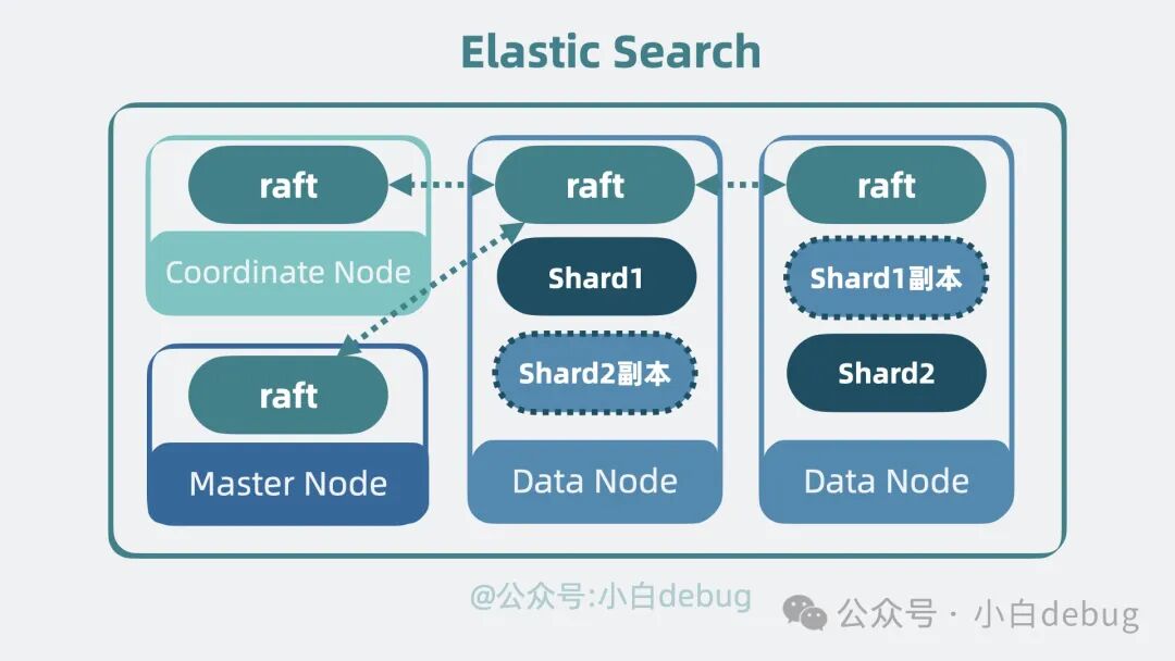 上面提到了主节点,那就意味着还有个选主的过程,但现在每个 Node 都是独立的,需要有个机制协调 Node 间的数据。我们很容易想到,可以像 kafka