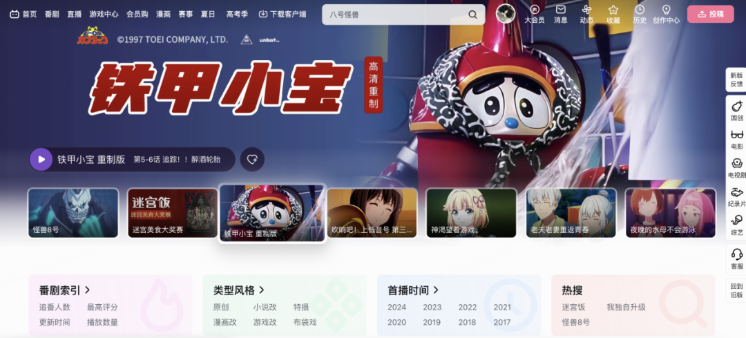 拥有相应频道对内容进行分品类运营的能力,内容内部除了UGC播放页的所有元素还包括相应的媒资信息、社区评分、ep列表、不同的视频分节等元素构成一部剧集内容,