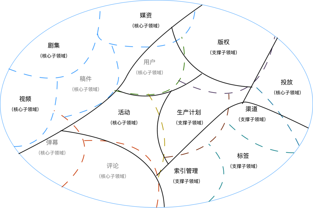 当我们在定位一个子领域时,会出现其他业务内也存在这样的问题,例如:版权,OGV业务面临版权问题,bilibili的其他业务音乐,漫画等也面临版权问题,此时在另一个的层面,企业维度来看,这个对于OGV来说的版权子领域,在企业多业务角度,版权领域的定位就会发生变化,其要解决的就不仅仅是OGV业务的版权问题,并且随着外部环境变化(政策,行业对版权的规范性变化),领域的重要程度也可能变更,但是并不改变子领域在价值归属,版权领域作为支撑子领域的价值判断。