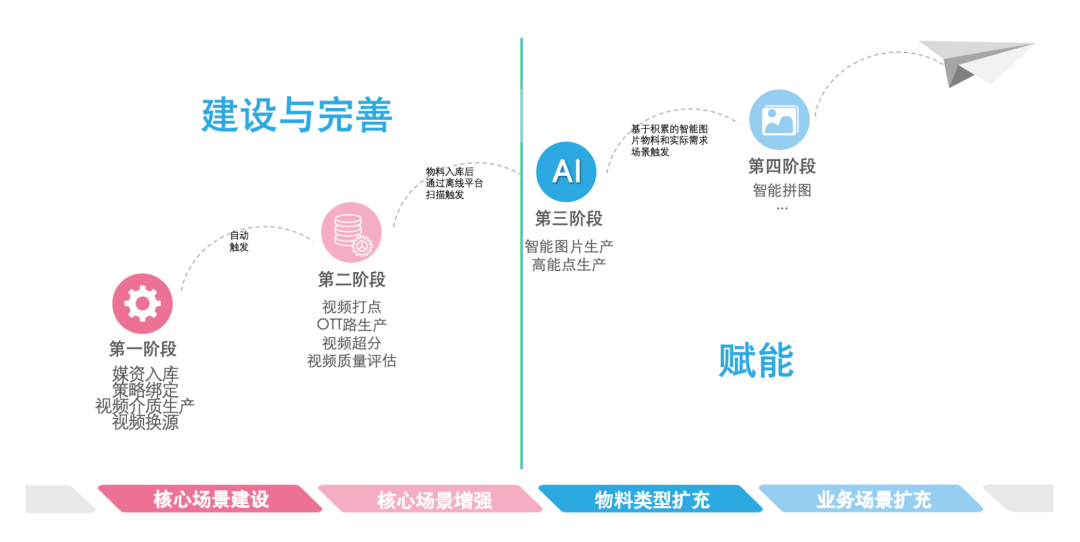 第一二阶段完成了基础架构的搭建,完成了OGV核心业务流程的建设和增强,解决OGV内容生产链路的核心痛点并提效。