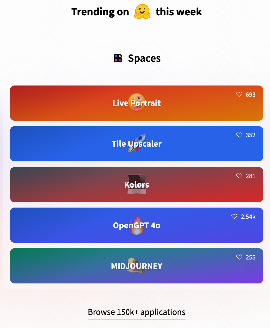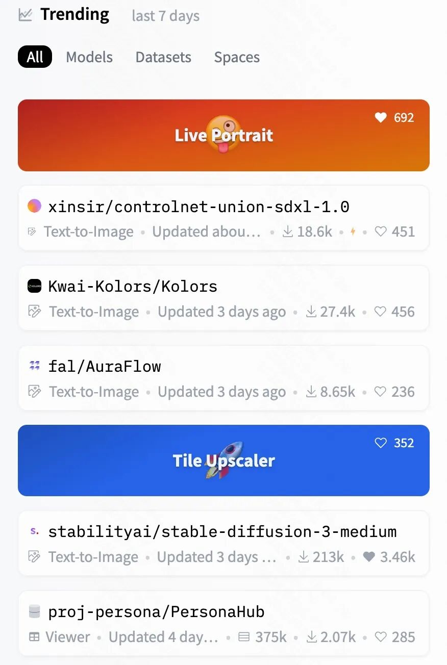 此外,HuggingFace Space、Papers with code趋势榜连续一周榜一,近日登顶HuggingFace所有主题排行榜榜一: