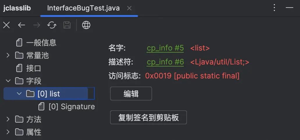 通过 IDEA jclasslib Bytecode Viewer 插件查看字节码,可以看到接口的属性都是 public static final 修饰的。