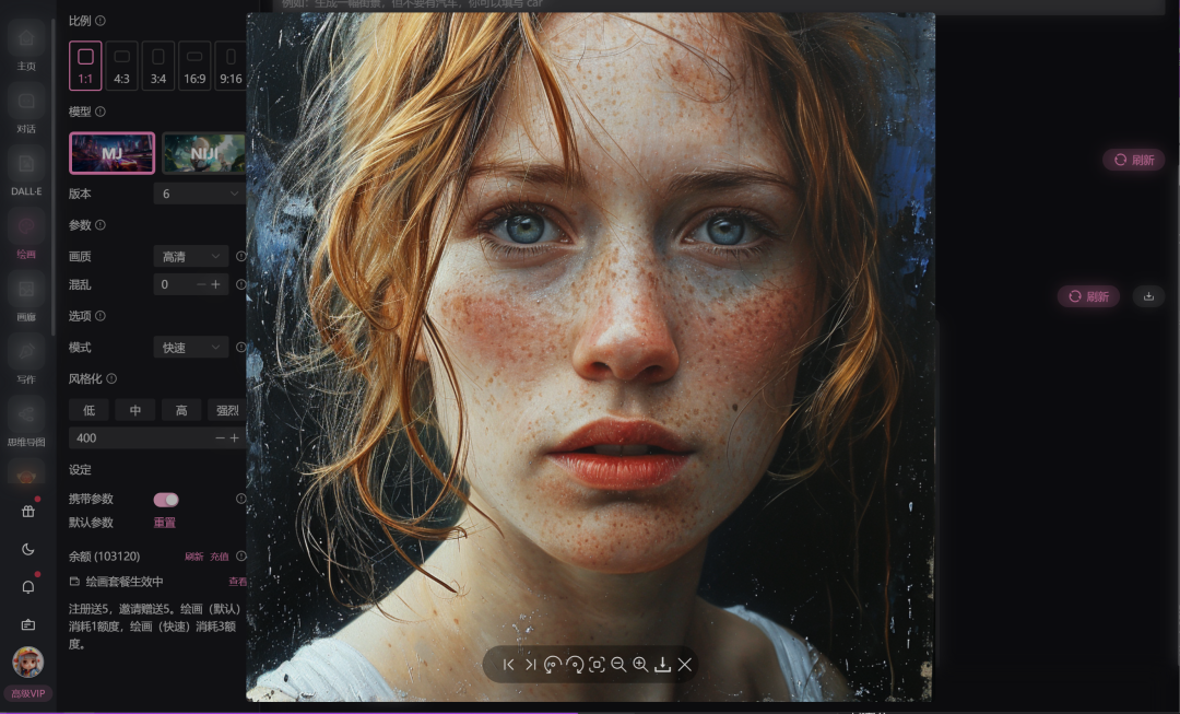 支持文生图/图生图/融图等各种功能,并且阿水AI郑重承诺:接入100%原生Midjourney,官方MJ能画成什么样,阿水AI就能画成什么样!