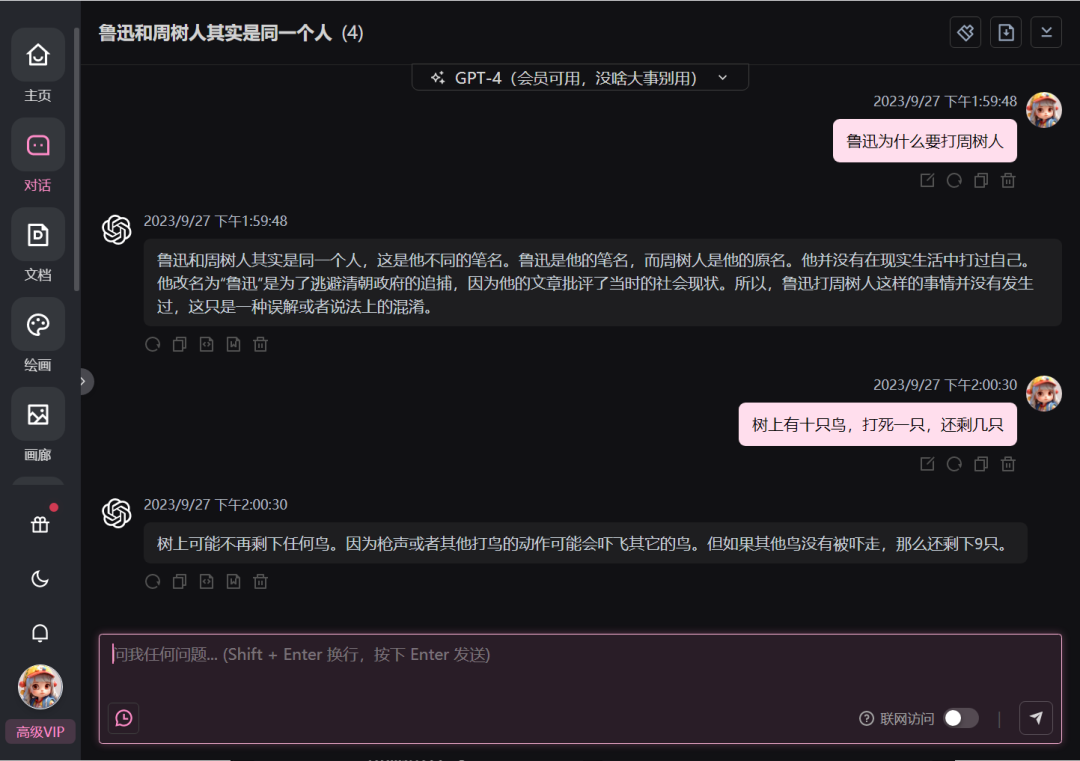 所以想体验上GPT4.0+Midjourney绘画,不仅每个月要360元开VIP,还要自行解决网络问题,想想都让人头大。