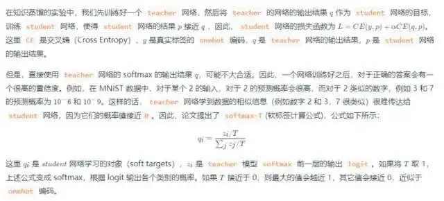 知识蒸馏(knowledge distillation),是迁移学习(transfer learning)的一种,简单来说就是训练一个大模型(teacher)和一个小模型(student),将庞大而复杂的大模型学习到的知识,通过一定技术手段迁移到精简的小模型上,从而使小模型能够获得与大模型相近的性能。