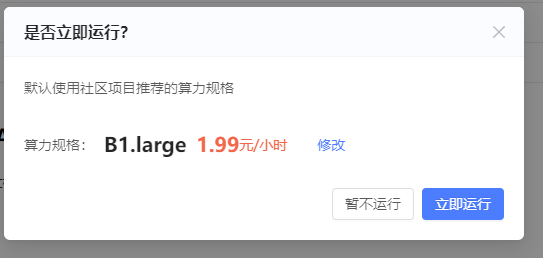 ,即可将项目一键克隆到工作空间,不需要自己动手收集下载数据集、模型等。另外,『社区项目』推荐适用的算力规格,可以直接立即运行