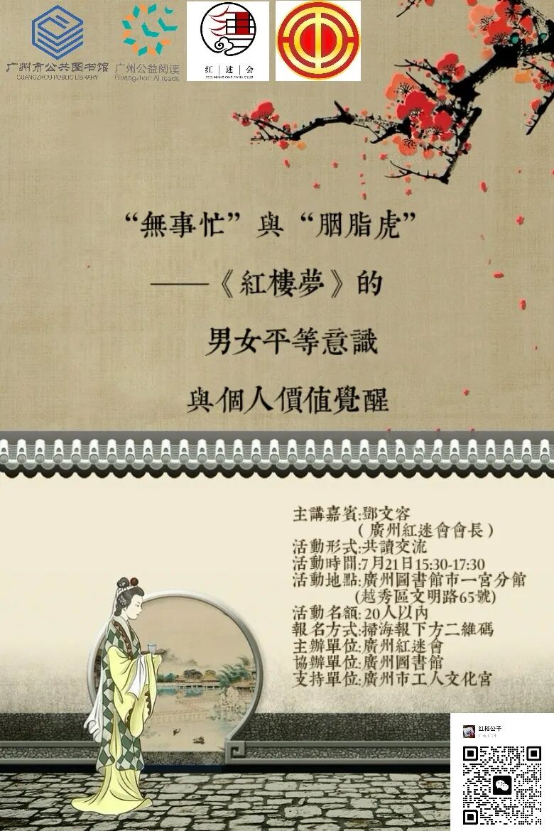 7月21日 “无事忙”与“胭脂虎”——《红楼梦》的男女平等意识与个人价值觉醒【广州红迷读书会】