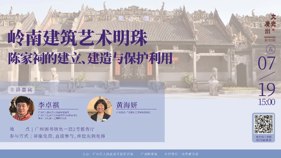 **活动简介:**讲座通过还原陈家祠建立和建造的全过程,包括选址、发起、集资、建立和建造,反映清末广州西关地区的城市建设和交通状况、社会网络的形成、城乡关系的变化以及建筑工艺的发展。