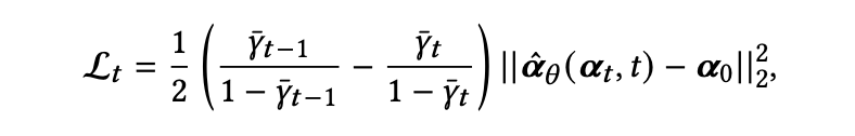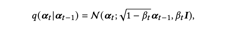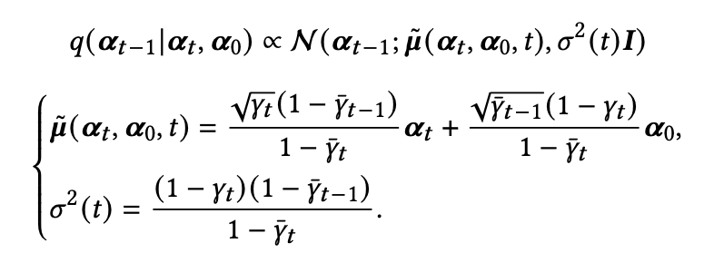 当 时,状态 会逐渐接近一个符合高斯分布的标准状态。为了得到状态 ,作者使用了重参数技巧和独立高斯噪声可叠加的特性,直接从初始状态 推导出来: