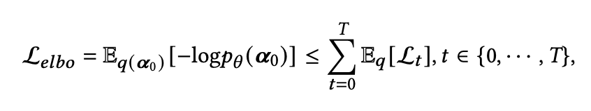 扩散模型的优化目标是引导逆向图扩散过程。为了实现这一目标,需要优化负对数似然的 Evidence Lower Bound(ELBO)来优化 :