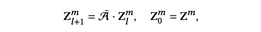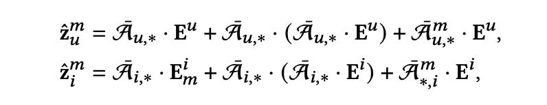 这里, 表示通过图扩散模型生成的模态感知图。为了获得多模态感知的高阶协同信息,作者进一步在原始用户-物品交互图 进行了迭代的消息传递: