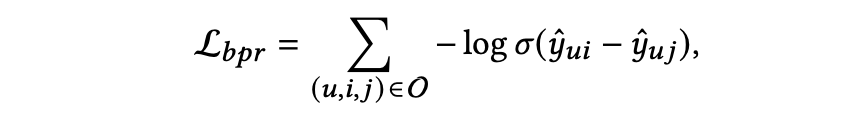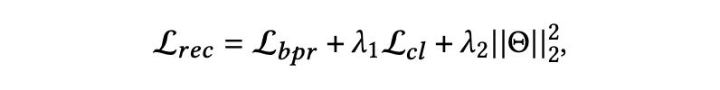 对于推荐任务的训练,作者引入了经典的贝叶斯个性化排名(BPR)损失和多模态对比增强损失 ,BPR 损失定义如下: