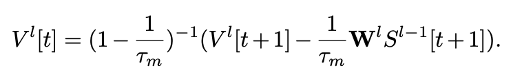随后,可以在 和 之间建立可逆变换。这意味着在计算第一个时间步的梯度时,无需存储所有时间步的膜电位和激活值。我们只需要存储 。这减少了 SNNs 多时间步训练所需的内存。Turn on 神经元的时间复杂度与传统的 SNN 训练一致为 O(T)。