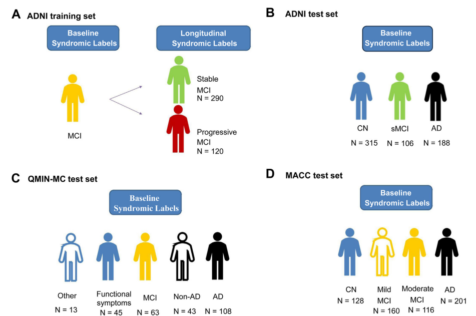 该研究使用一个研究队列(阿尔茨海默病神经影像学计划,ADNI)用于PPM训练和测试;两个临床队列作为独立的测试数据集,用于样本外验证:英国国家医疗服务体系(NHS)记忆诊所的脑结构与功能定量MRI(QMIN-MC)、新加坡国立大学记忆老化与认知中心数据集(MACC)。