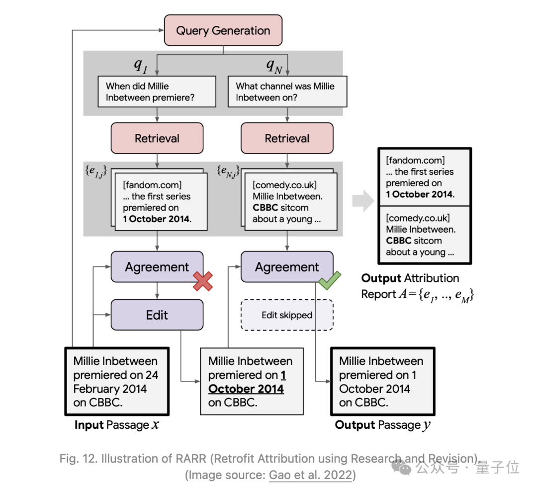 RARR(Retrofit Attribution using Research and Revision)是Gao等人2022年提出的一个框架,通过编辑归因使LLM能够追溯地支持对外部证据的归因。