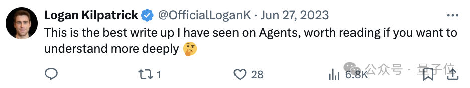 之前,翁荔还提出过Agent公式:Agent=大模型+记忆+主动规划+工具使用,被一些网友称为是“看到的有关Agent的最好的文章”。