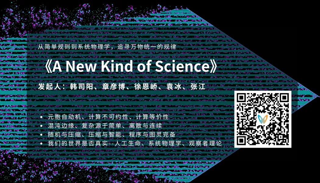 《一种新科学》作为Stephen Wolfram的开创性著作,在人工智能蓬勃发展的今天重新焕发生机。该书探讨的简单程序生成复杂性、计算普遍性和涌现行为等核心概念,与现代AI和大语言模型的基本原理高度吻合。最近社区成员韩司阳等老师积极推动《A New Kind of Science》在国内的翻译出版工作,所以集智俱乐部联合社区成员韩司阳、章彦博、徐恩峤、张江一起联合发起关于这本书的读书会,从9月1日起,每周日上午10:00-12:00开始系列的讨论,欢迎大家加入读书会,做读书会分享或者认领翻译任务。