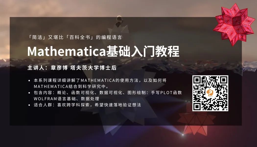 同时强烈大家去集智学园上学习塔夫茨大学的博士后,也是我们这个读书会的发起人章彦博老师精心制作的Mathematica系列教程,它是一门简洁但又堪比「百科全书」的编程语言,非常适合新手入门,尤其是对跨学科探索感兴趣,希望快速验证一些想法,但不太想学习过于复杂的编程语言,Mathematica就非常合适。