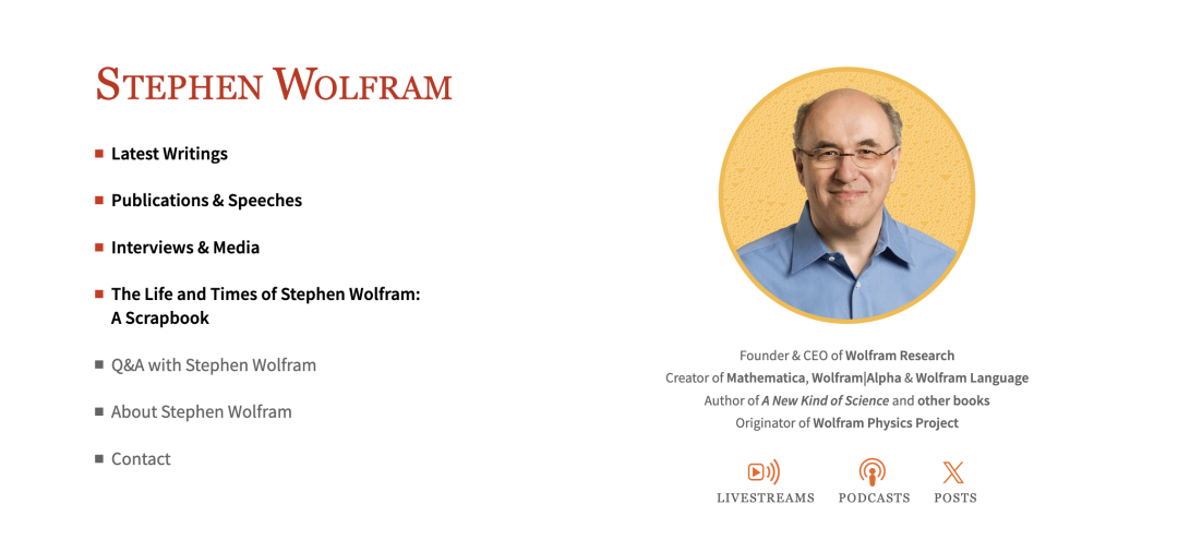 Wolfram的个人主页有很多精彩的文章和内容,值得深入读一读!